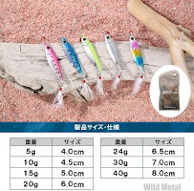 ショアジギングは、使うメタルジグの重さによって種類が分かれます。 簡単に紹介すると、 スーパーライトショアジギング:だいたいg・25gくらいまで ライトショアジギング:25g~50gくらいまで ショアジギング:50g・60g以上 目安としてはだいたいこんな感じです。 ライトショアジギングは、30cm台後半~40cm台くらいの青物や、ヒラメ・タチウオなどを狙うの. タックルは使用するメタルジグの重さと釣れる魚に合わせたルアー用のロッドであれば何でも使えます。 例えば10〜gを使って、アジ、サバをメインで狙うのであればエギングロッド、〜30gのメタルジグで大型のサバやサゴシを狙うのであればシーバスロッドといった具合です。 少し注意しておいた方が良いのはジグサビキでは複数の魚が一度に釣れることがあるということです。 2本針のサ. 10g~gまでのメタルジグを使えるタックルなら、ヒット率は更に上がり様々な魚を狙う事も可能です。 メタルジグの色 夜間でのメタルジグは 目立つ色 を使いましょう。 闇夜のときはグロー系をメイン に目立たせて食わせます。 グロー系と言っても、.