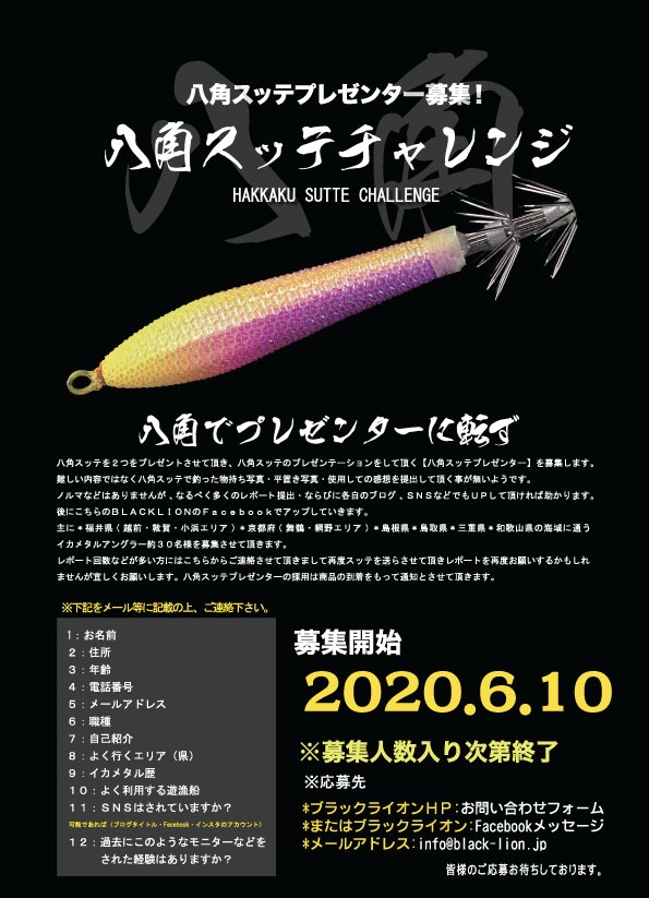 八角スッテ チャレンジ Blacklion ブラックライオン 公式サイト エギング ティップラン イカメタル