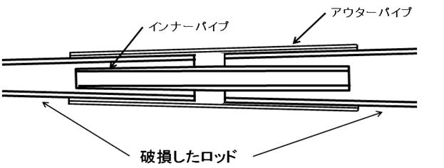 折れ竿修理 実践編1 折れ竿修理 実践編2 折れ竿修理 基本編 下の図の補修構造が基本形になります。 図ではインナーパイプ、アウターパイプとブランクスの間に隙間があるようになっていますが、実際は、密着し隙間がないように加工します。 インナー.