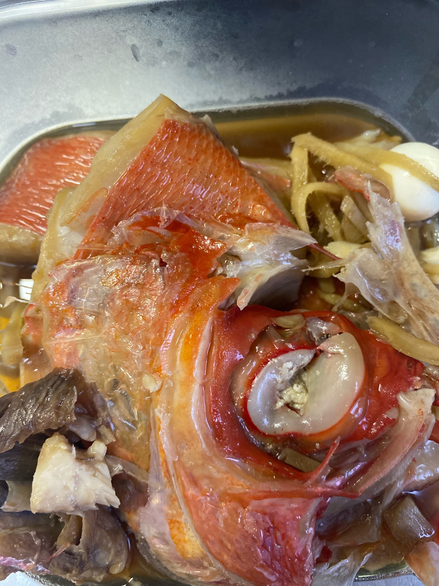 圧力鍋恐るべし 骨まで食べられる鯛のアラ煮 魚ココロあれば水ココロあり